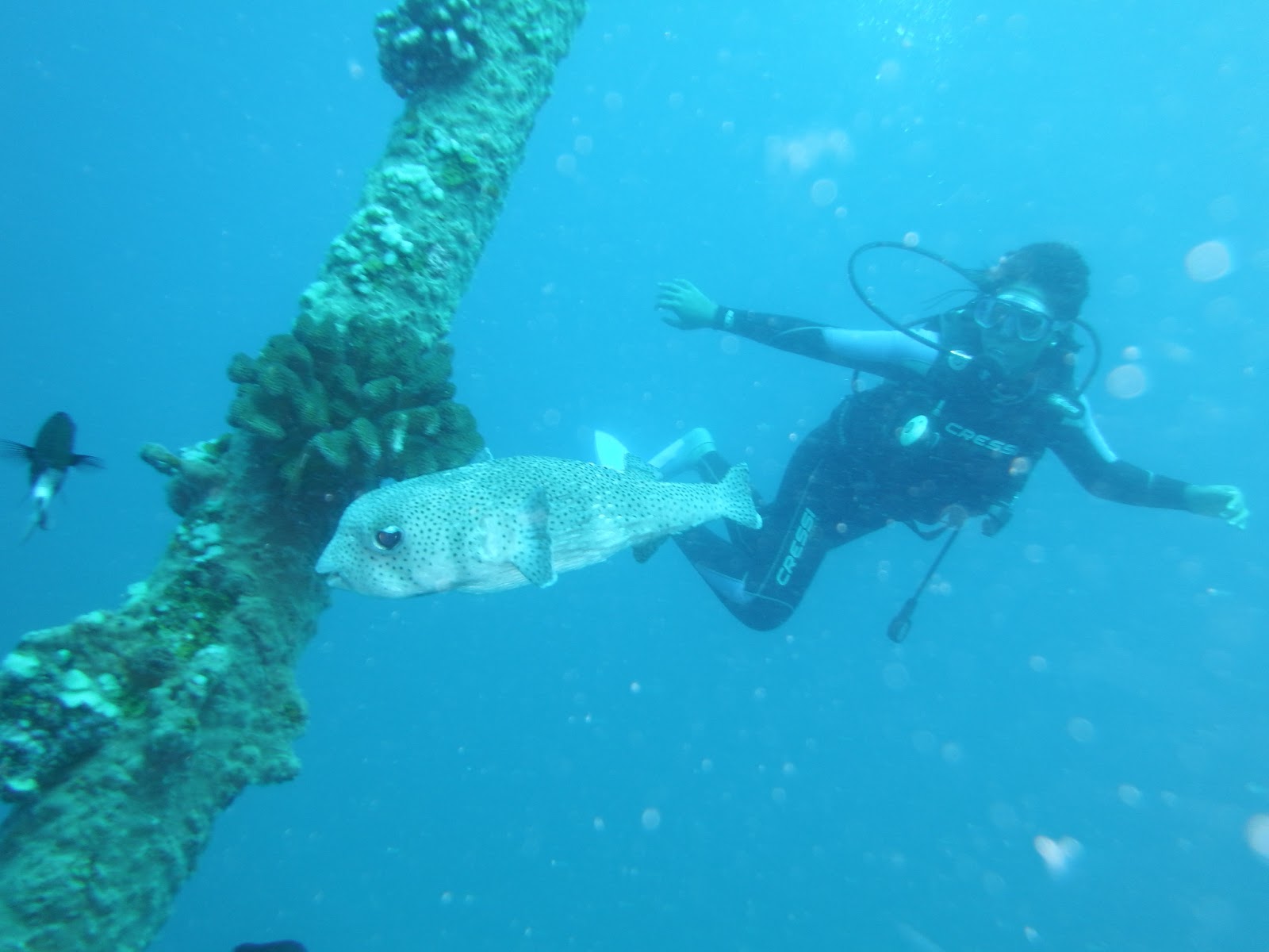 I’m so glad I followed my gut as I would have missed out on an awesome experience! The instructor surprised me and took me on my first (ship) wreck dive! The first thing I saw as we approached the bottom was my very first sea snake! Not an eel, not a long fish, but a bonafide sea snake! I then had an awesome time following the instructor and exploring the wreck bit by bit. It was eerie at times, but so beautiful. I was completely enthralled. That is until I saw this: